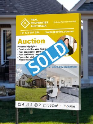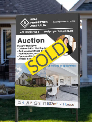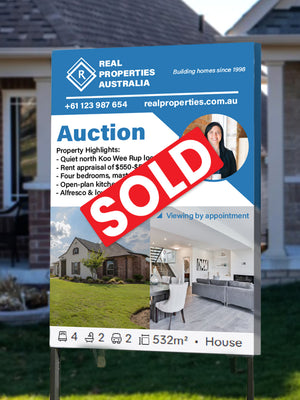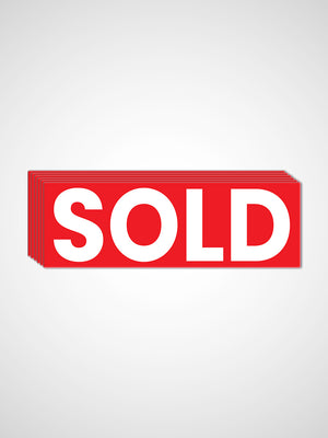 Exclaim that win with ready-printed SOLD stickers! All options are printed on waterproof and weather resistant vinyl. They are printed on bubble free premium unlaminated vinyl. Available on three different sizes: Large, Medium, and Small. You can choose between rectangular or round stickers to suit your needs.