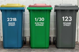 Our sticker quality and durability ensure that they can withstand all the elements without losing visibility. They’re easy to apply, water-resistant, weatherproof, and highly durable, everything you could need to ensure they last. We’ve made selections easier by offering 2 sizes. The sticker sizes are the maximum measurements of the stickers. They’re both great 120L and 240L bins. If you’re unsure what size to purchase, grab the small size, as you don’t need them to be too large for your bin.