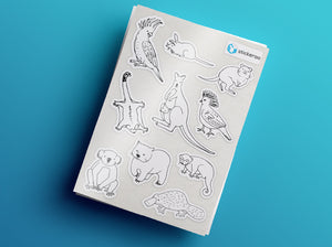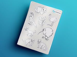 Colour me in to create your own stickers! Use permenant markers and even pencils to colour these sticker sheets to customise your own sticker. Perfect for birthday party gifts, school holiday activities or just sticker fun!