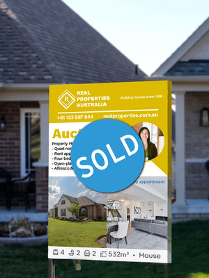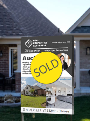 Exclaim that win with ready-printed SOLD stickers! All options are printed on waterproof and weather resistant vinyl. They are printed on bubble free premium unlaminated vinyl. Available on three different sizes: Large, Medium, and Small. You can choose between rectangular or round stickers to suit your needs.